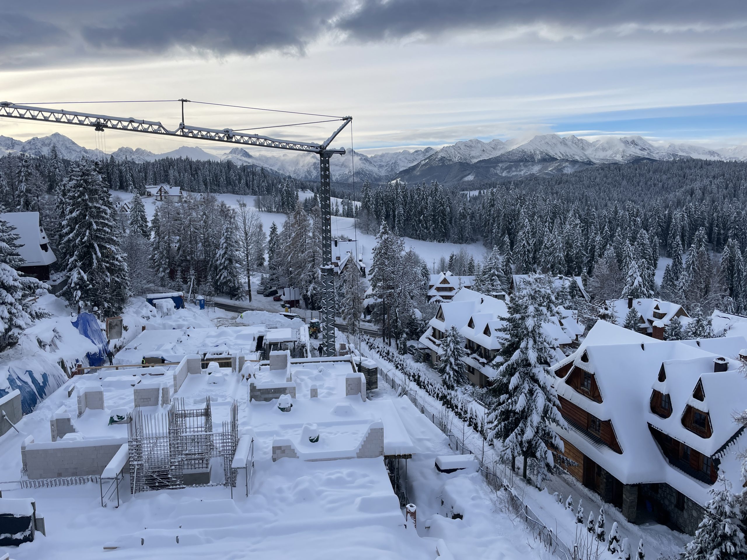 W tle rozpościera się majestatyczna panorama Tatr – widok, który już wkrótce stanie się codziennością dla przyszłych właścicieli i gości naszych apartamentów.